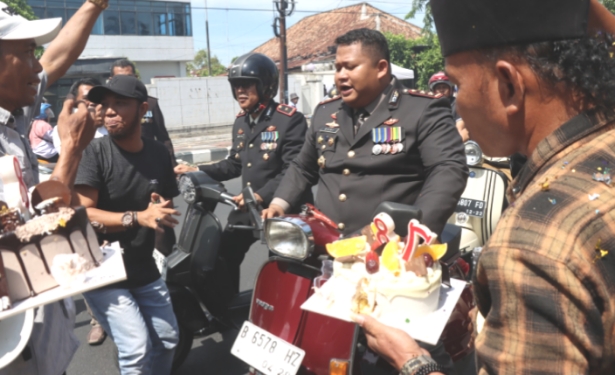 Dalam momen yang menarik perhatian publik, Kapolres memotong kue dan langsung menyuapkannya kepada Zaini Wer Wer, yang kemudian membalas dengan menyuapkan potongan kue tersebut kepada Kapolres.