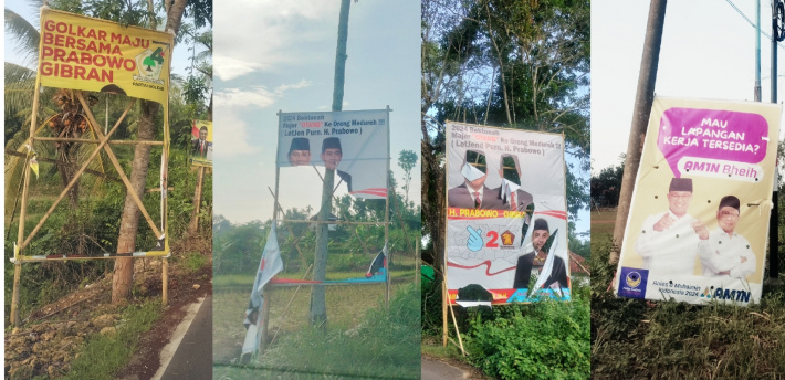 Baleho Prabowo Gibran yang dirusak banyak ditemui disejumlah jalan kabupaten di Kabupaten Pamekasan, Seperti yang berada di Jalan Raya Kecamatan Pegantenan.
