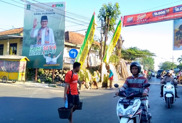 Wakil Ketua DPC PKB Pamekasan Khairul Umam menyampaikan banner Baddrut Sang Pemimpin yang banyak dipasang di titik jalanan sebagai tanda terima kasih masyarakat Pamekasan karena sudah membawa banyak perubahan pembangunan.