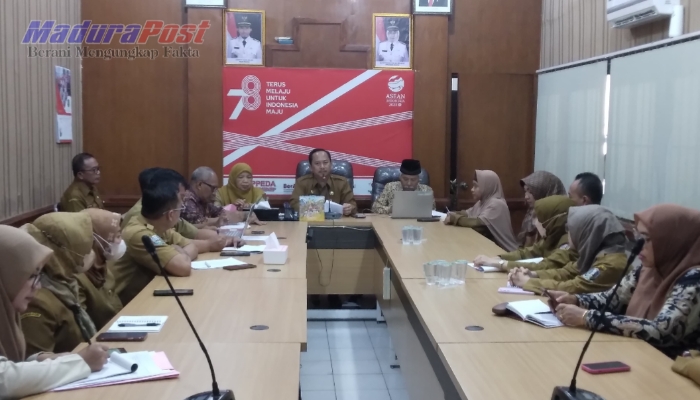 MONITORING. Kepala Bappeda Sumenep, Arif Firmanto, saat melangsungkan rapat bersama Tim Monitoring di aula kantor setempat. (Istimewa for MaduraPost)