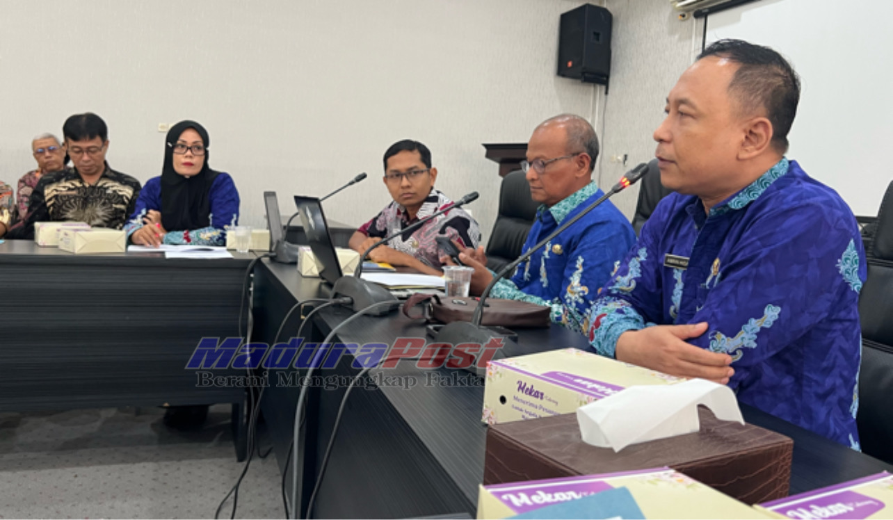 Caption : Perempuan (berkacamata) bendahara diskominfo kabupaten sampang saat mengikuti audiensi bersama persatuan jurnalis sampang beberapa pekan yang lalu (foto : dokumentasi madurapost).