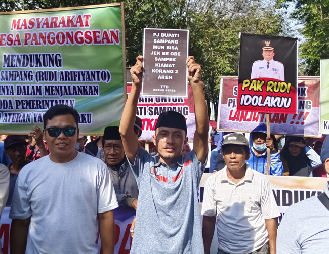 Aksi damai dari ribuan massa tersebut ditunjukkan guna mendukung dan memberikan support moril terhadap kinerja Penjabat (Pj) Bupati Sampang Rudi Arifianto selama ini.