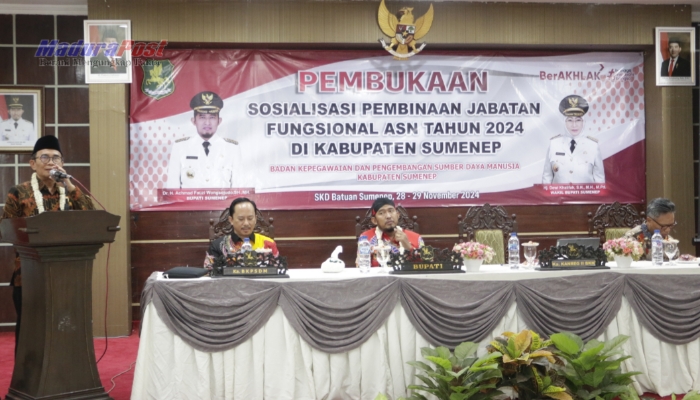 “Pejabat fungsional di lingkungan Pemerintah Kabupaten Sumenep harus benar-benar berperan aktif dalam mendorong semangat untuk mengabdi demi keberhasilan pembangunan,” kata Bupati saat menghadiri Sosialisasi Pembinaan Jabatan Fungsional ASN di SKD Batuan, Kamis (28/11).