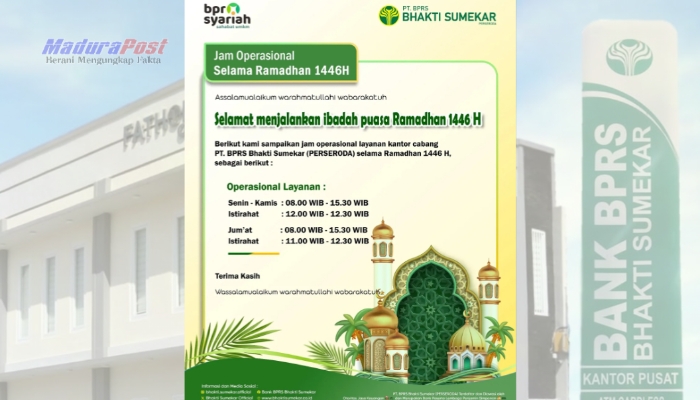 SUMENEP, MaduraPost – Dalam rangka menyambut bulan suci Ramadan 1446 H, BPRS Bhakti Sumekar melakukan penyesuaian jam operasional di seluruh kantor cabangnya.