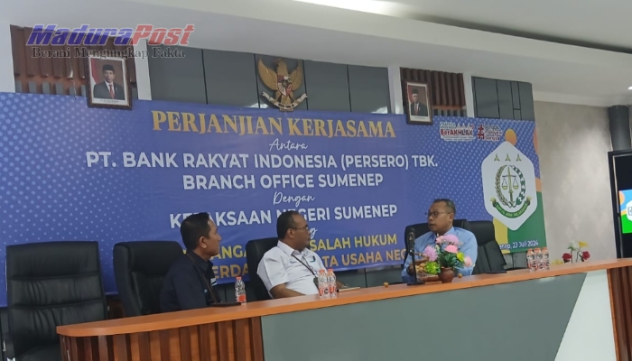 SUMENEP, MaduraPost – Bank Rakyat Indonesia (BRI) Kantor Cabang Sumenep melakukan penandatanganan kerja sama atau MoU dengan Kejaksaan Negeri (Kejari) Sumenep di Bidang Hukum Perdata dan Tata Usaha Negara.