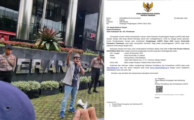 Dalam surat bernomor UND/2885/LHK.01/12/12/2022 disebutkan bahwa Bupati Baddrut Tamam akan menerima Penghargaan Laporan Harta Kekayaan Penyelenggara Negara (LHKPN) Tahun 2022.