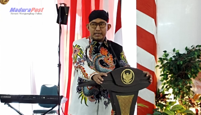 SAMBUTAN. Potret Bupati Sumenep, Achmad Fauzi Wongsojudo, saat sambutan dalam Temu Ramah dan Apresiasi Hasil Pertanian di Pendopo Agung Keraton. (M.Hendra.E/MaduraPost)