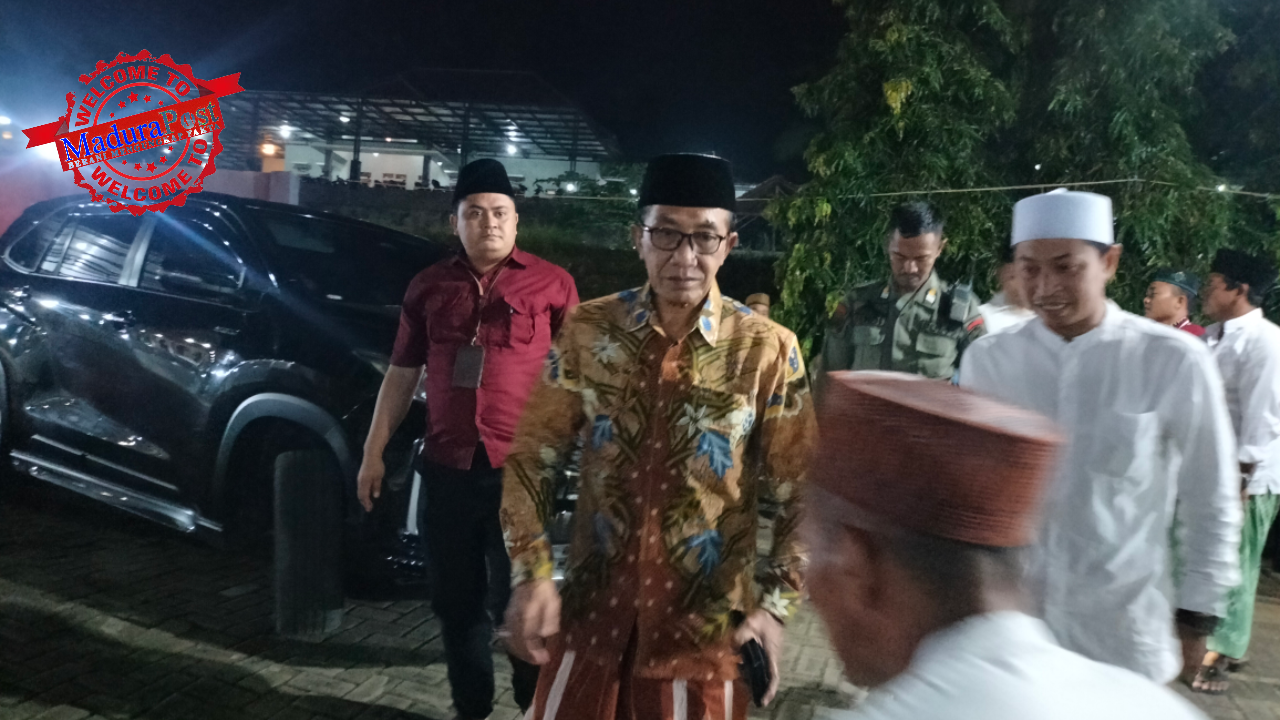 Foto: Bupati Pamekasan saat Hadiri Acara Tahlilan 7 Hari Wafatnya KH. Sasro Sarbini di Ponpes Ainul Huda di Dusun Kowel, Desa Batu Kerbuy, Kecamatan Pasean. (Dok: Madura Post)