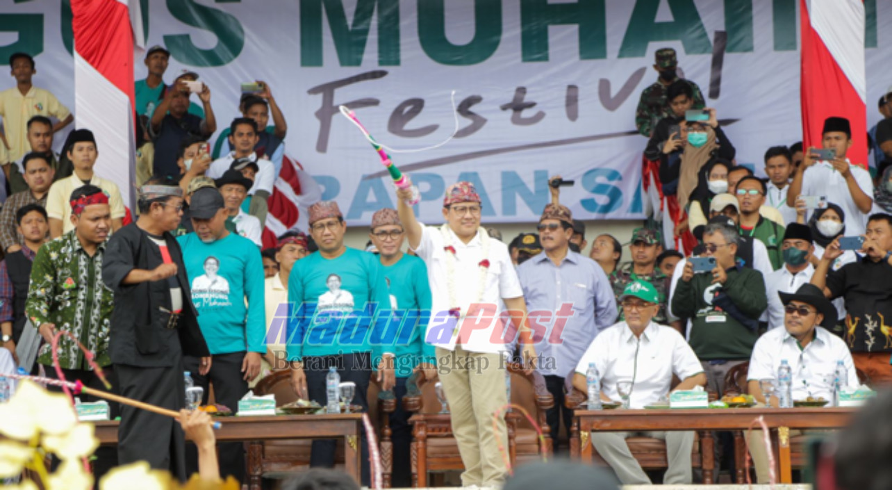 Dalam sambutannya, Gus Muhaimin menyampaikan rasa bangganya bisa hadir dan membuka langsung festival karapan sapi yang menjadi tradisi turun menurun masyarakat Madura.