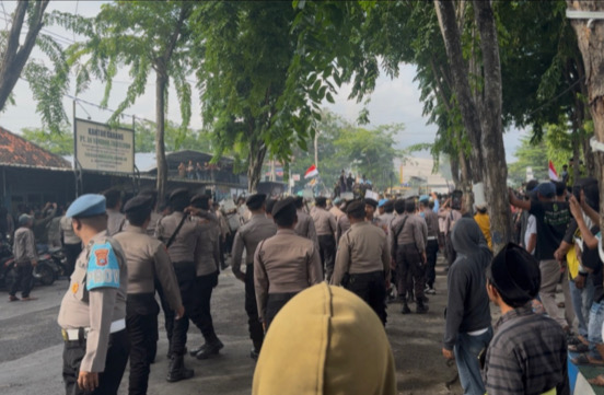 Sekitar pukul 15:00 WIB, suasana aksi yang awalnya tertib mulai memanas. Massa yang ingin masuk lebih dekat ke area kantor DPRD dihadang aparat kepolisian yang berjaga di sisi utara alun-alun. Dorong-mendorong tak terhindarkan.
