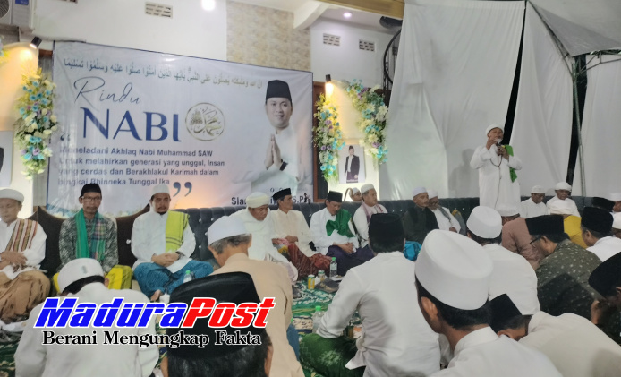 SAMPANG, MaduraPost – Acara maulid nabi yang dikemas dengan tema ‘Rindu Nabi’, digelar di kediaman Anggota DPR RI Fraksi PAN, Slamet Ariyadi di Desa Masaran, Kecamatan Banyuates, Kabupaten Sampang. Ahad (30/10/22) Malam.