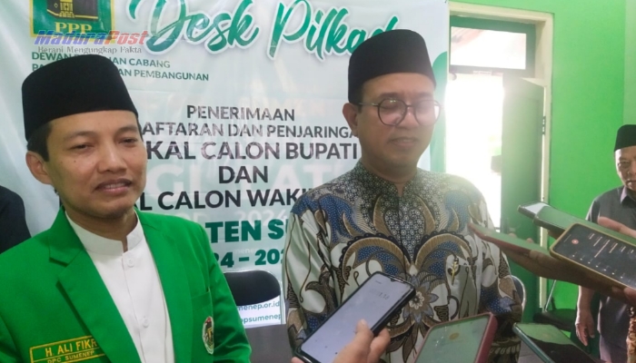 SUMENEP, MaduraPost – Partai Persatuan Pembangunan (PPP) secara resmi menyatakan dukungan kepada KH Muhammad Ali Fikri dan KH Muh Unais Ali Hisyam untuk maju sebagai pasangan bakal calon bupati dan wakil bupati dalam Pemilihan Kepala Daerah (Pilkada) Sumenep 2024.
