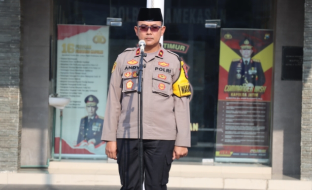 Wakapolres Kompol Andy Purnomo menegaskan, tema peringatan tahun ini menggambarkan semangat melanjutkan perjuangan para pendahulu sambil menatap masa depan yang lebih baik.