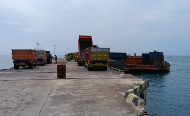 Proses bongkar muat ini melibatkan puluhan mobil truk yang siap mengangkut pasir lalu dibawa ke arah barat. Tidak diketahui titik lokasi dan pemilik pasir tersebut