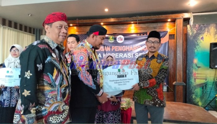 SUMENEP, MaduraPost – Dinas Koperasi Usaha Mikro Kecil Menengah (UMKM), Perindustrian dan Perdagangan (Perindag) Kabupaten Sumenep, Madura, Jawa Timur, memberikan penghargaan kepada Koperasi Sehat 2023. Kamis, 10 Agustus 2023.