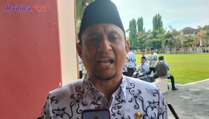 WAWANCARA. Kepala Disdik Sumenep, Agus Dwi Saputra, saat diwawancara media usai apel HGN 2023 di kantor pemkab setempat, Sabtu (25/11/2023) kemarin. (M.Hendra.E/MaduraPost)