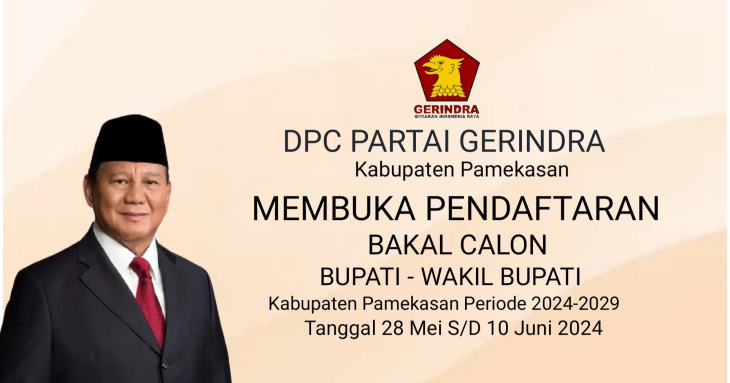 PAMEKASAN, MaduraPost – Dewan Pimpinan Cabang (DPC) Partai Gerindra Kabupaten Pamekasan membuka pendaftaran bakal calon Bupati dan Bakal Calon Wakil Bupati Pamekasan untuk Pilkada serentak 2024.