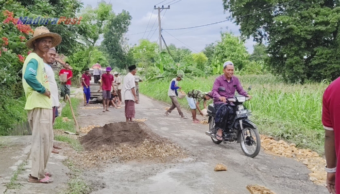 SUMENEP, MaduraPost – Warga Desa Bataal Timur, Kecamatan Ganding, Kabupaten Sumenep, Madura, Jawa Timur, melaksanakan gotong-royong untuk memperbaiki jalan kabupaten yang telah rusak parah, mengingat pemerintah daerah setempat tidak memberikan perhatian terhadap jalan tersebut selama bertahun-tahun.