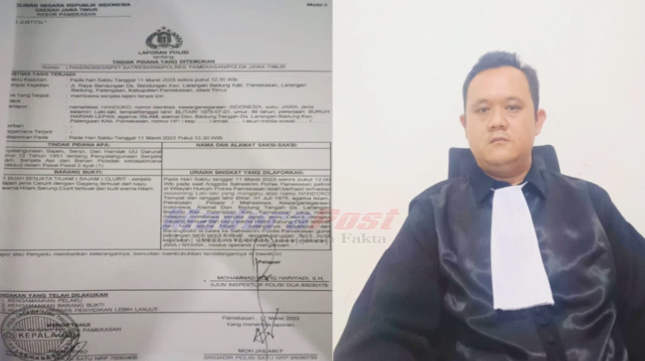 Diketahui, pada tanggal 11 Maret 2023, sekira pukul 12.30 WIB Handoko (Terdakwa) dilaporkan membawa sajam tanpa izin di Jl. Raya Badung, Desa Larangan Badung, Kecamatan Palengaan, Kabupaten Pamekasan. Hingga kini Handoko ditahan di LAPAS Pamekasan.