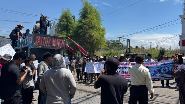 Massa menuntut perusahaan asal Malaysia itu segera membayar ganti rugi atas kerusakan rumpon milik nelayan Madura yang hingga kini tak kunjung diganti.