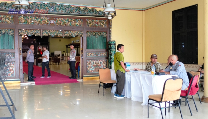 Di lokasi, terlihat para petugas kepolisian melakukan pengamanan dalam rapat pleno rekapitulasi tingkat kabupaten hari terakhir.