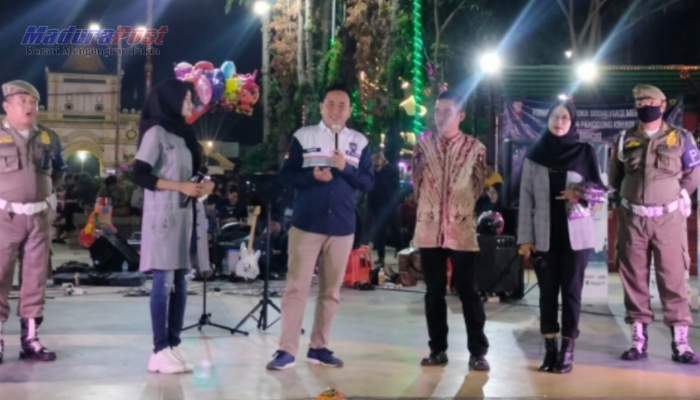 ACARA. Potret salah satu sosialisasi pemberantasan rokok ilegal yang digelar Satpol PP Sumenep bekerja sama dengan panitia 'Panggung Kreasi'. (Istimewa for MaduraPost)