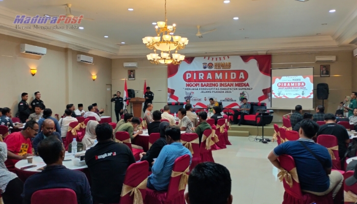 Acara tersebut menjadi program Polres Sumenep dengan nama PIRAMIDA (Ngopi Bareng Insan Media) bertema “Menjaga Kondusifitas Kabupaten Sumenep Jelang Pilkada 2024”.