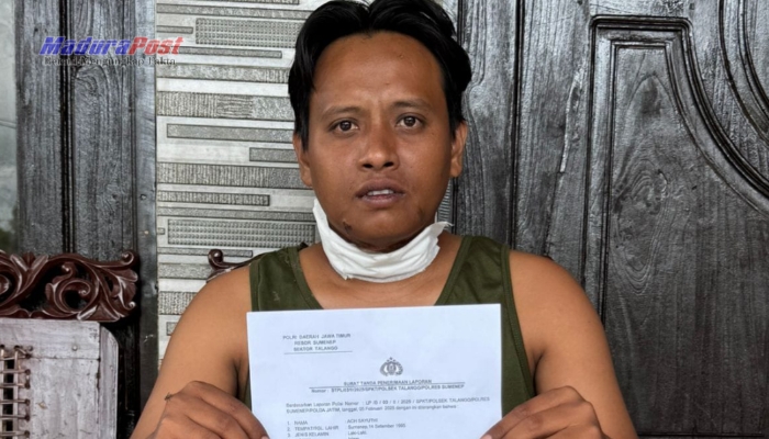 LAPORAN. Potret Sayuthi (29) atau korban, saat menunjukkan bukti laporan yang keluar dari Polsek Talango. (Istimewa for MaduraPost)