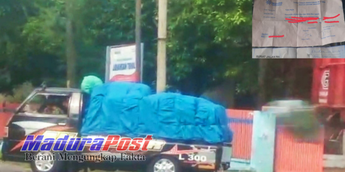 Caption : Mobil Pic Up pemuat beras saat keluar dari gudang Bulog Pamekasan menuju tempat tengkulak dan bukti terima pembayaran dari Kantor Bulog Pamekasan. (Mohammad Munir/MaduraPost)