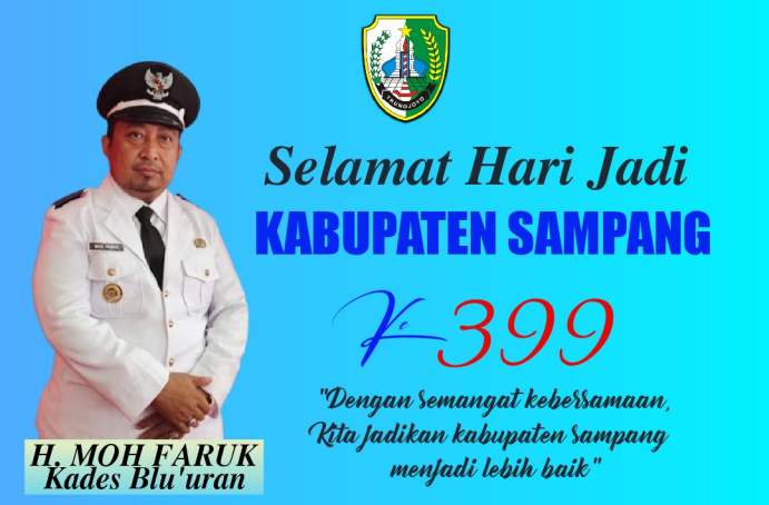 “Kami keluarga besar pemerintah Desa Blu’uran sekaligus mewakili Kades se – Kecamatan Karang Penang mengucapkan selamat Hari Jadi Kabupaten Sampang ke – 399,” kata H. Moh. Faruk (13/12/2022).