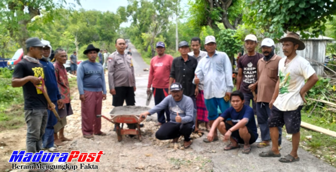 Kades Pangereman Sampang Ajak Warganya Gotong Royong Perbaiki Jalan Kabupaten yang Rusak