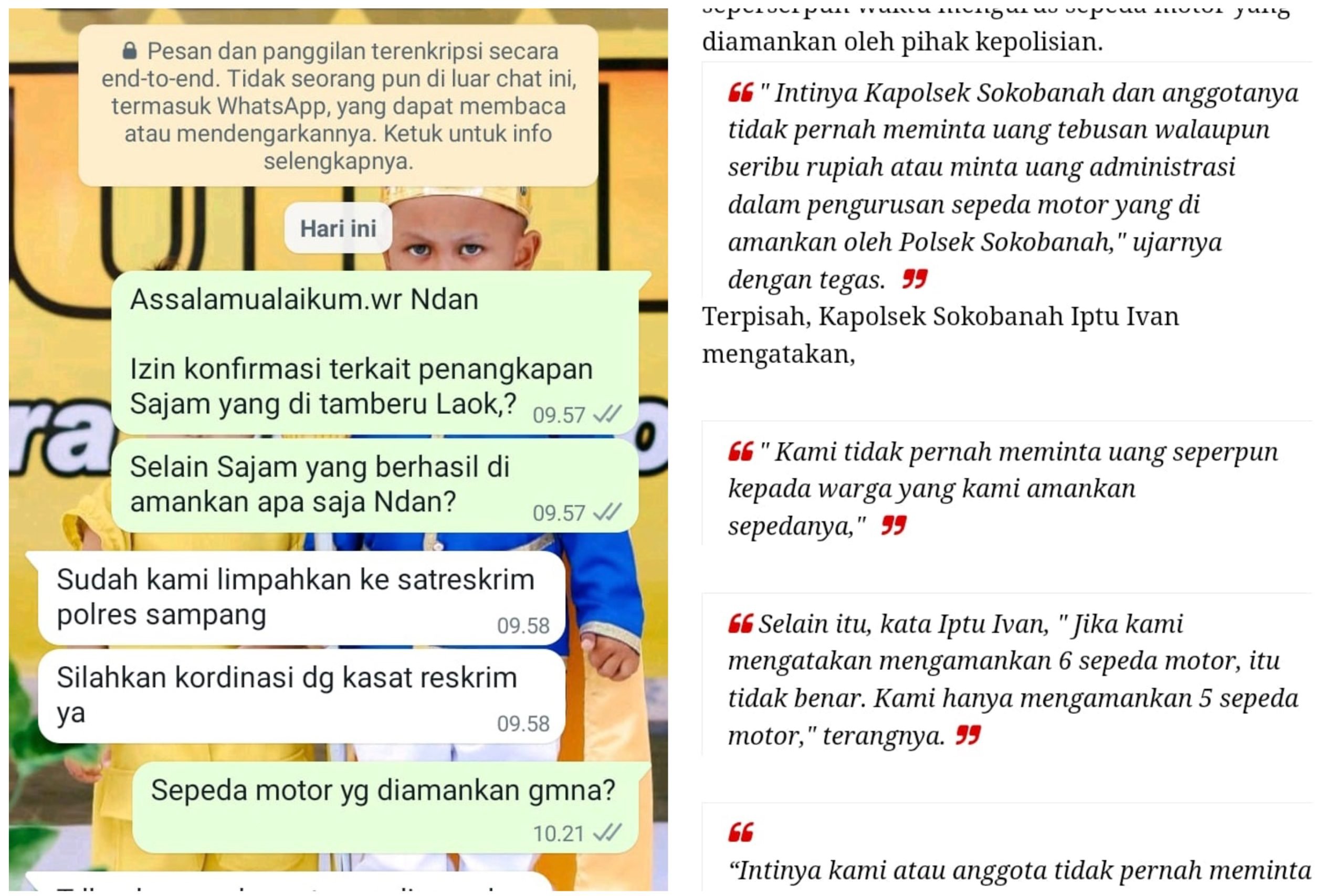Hal tersebut diketahui saat memberikan klarifikasi disalah satu media online Jatimsatunews.com. Kapolsek Sokobanah telah membenarkan adanya pengamanan terhadap beberapa unit motor oleh oknum Polsek Sokobanah.