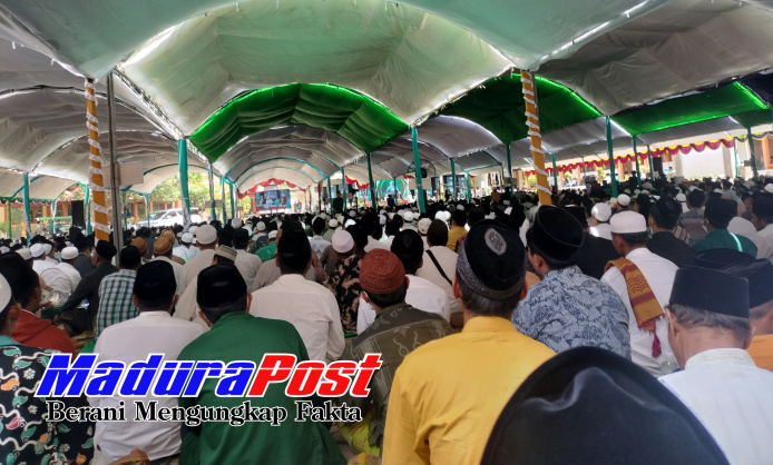 Ribuan Alumni Pondok Pesantren Miftahul Ulum Panyeppen saat mengikuti acara istighosah dalam acara reuni ketiga Ikbas PPMU Panyeppen. (Foto: MaduraPost)
