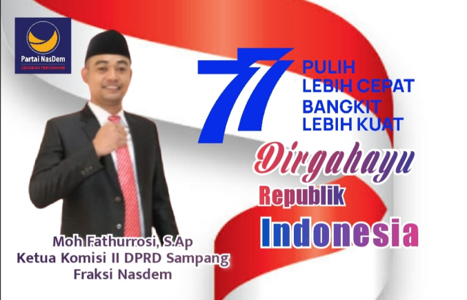 SAMPANG, MaduraPost – Ketua Komisi II DPRD Sampang, Moh Fathurrosi S.Ap Menyambut Hari Kemerdekaan Republik Indonesia ke 77 dengan penuh hikmah.