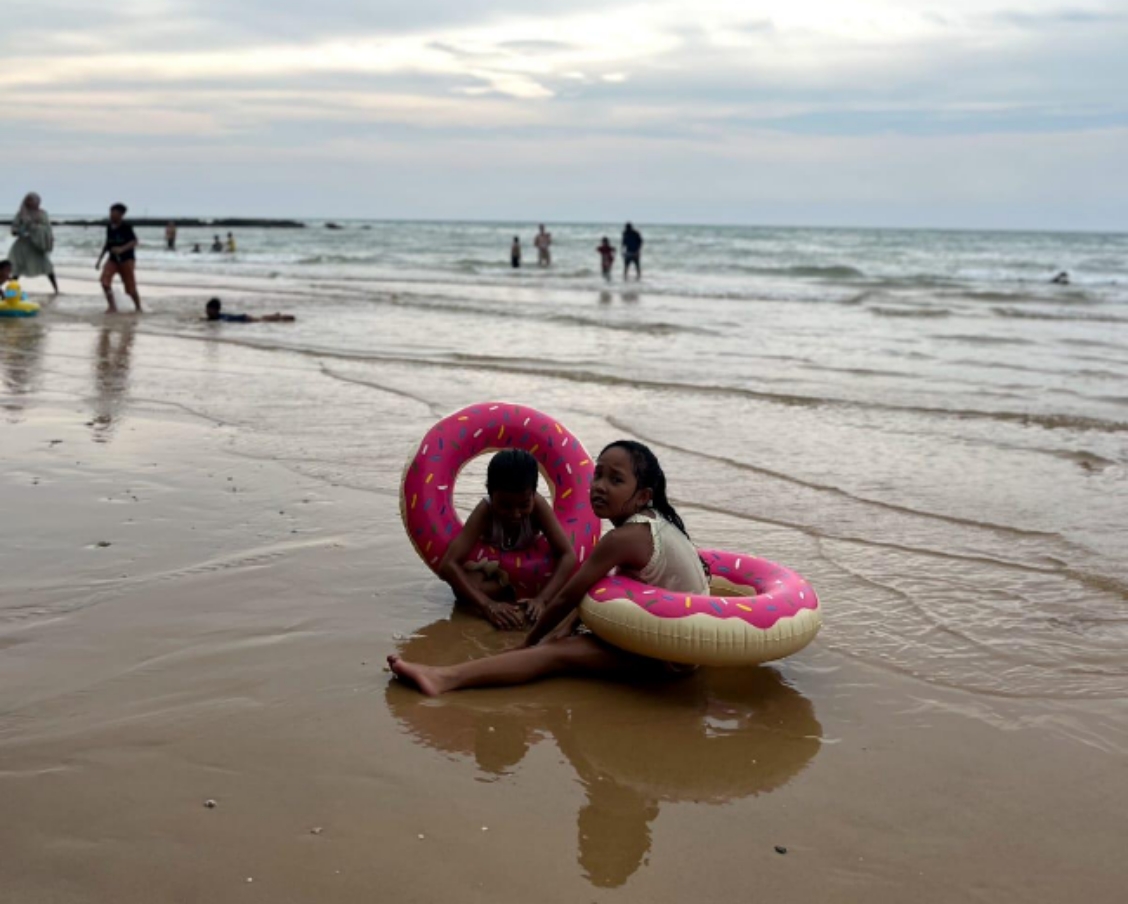 Indah juga menambahkan, Pantai Lon Malang memiliki banyak wahana yang bisa dinikmati bersama keluarga tanpa harus mengeluarkan biaya yang mahal. “Disini wahana airnya ada, mainan anak-anaknya juga ada, kuliner juga ada. Jadi saya rasa lengkap,” imbuhnya.