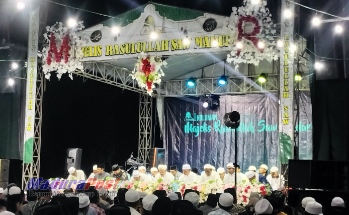 PAMEKASAN, MaduraPost – Ribuan masyarakat desa Bajang Kecamatan Pakong Kabupaten Pamekasan memadati lapangan desa bajang untuk bersholawat bersama Majelis Rasulullah Madura yang dipimpin oleh Kyai Muda Raden Abbas Ahmad Rofii Banyuanyar. Senin (18/12/23) malam.
