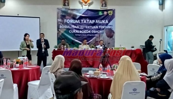 SUMENEP, MaduraPost – Demi memaksimalkan pemberantasan rokok ilegal, Bea Cukai dan Satpol PP Kabupaten Sumenep, Madura, Jawa Timur, mengadakan sosialisasi Ketentuan Tentang Cukai Rokok DBHCHT. Selasa, 29 Agustus 2023.