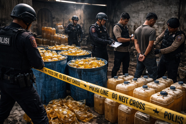 Kasus ini mencuat setelah aparat melakukan penggerebekan dan mengamankan sejumlah minyak goreng curah beserta sarana distribusi yang diduga digunakan untuk praktik yang berpotensi melanggar hukum dan merugikan masyarakat.