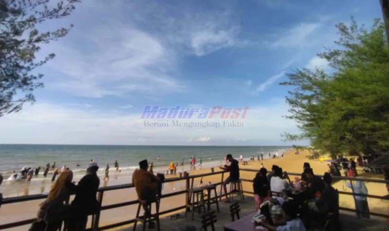 Saat tim MaduraPost menyambangi pantai tersebut pada libur panjang, Rabu (13/05/2025), suasana ramai namun tetap tertib menyambut di pintu masuk. Anak-anak bermain pasir dengan riang, para orang tua bersantai di bawah rindangnya pepohonan, sementara remaja dan pasangan muda asyik mengabadikan momen di sejumlah spot foto Instagramable yang tersedia.