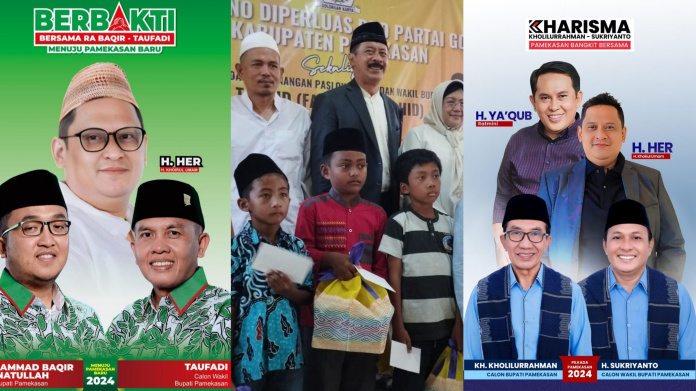 Berdasarkan pantauan Media ini, Tim Sukses Paslon Kharisma yang pertama memasang foto H.Her bersama Foto KH.Kholilurrahman-Sukriyanto. kemudian tidak berselang satu hari Tim Sukses Paslon Berbakti juga memasang Foto H.Her bersama Ra Baqir-Taufadi.
