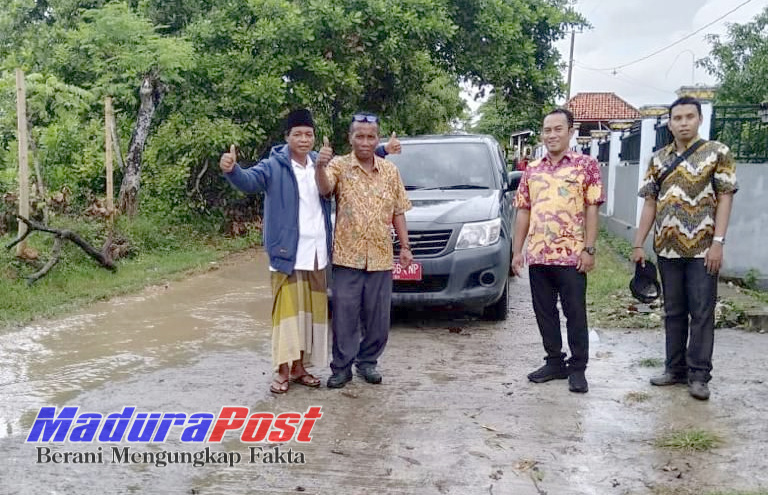 Prihatin..!!! Dinas PUPR Sampang bersama anggota DPRD Sampang (Wafi) Dapip melihat jalan yang diperbaiki masyarakat secara swadaya.