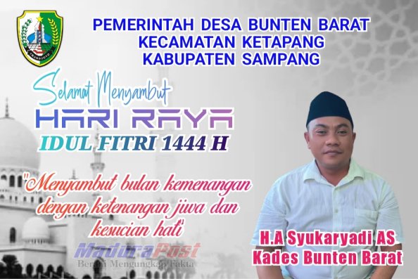 SAMPANG, MaduraPost – Dalam momentum Bulan Suci Ramadhan yang penuh barokah sekaligus Menyambut hari raya Idul Fitri 1444 Hijriyah. Pemerintah Desa Bunten Barat Kecamatan Ketapang Kabupaten Sampang mengajak Masyarakat untuk tetap Istiqomah dalam kebaikan.