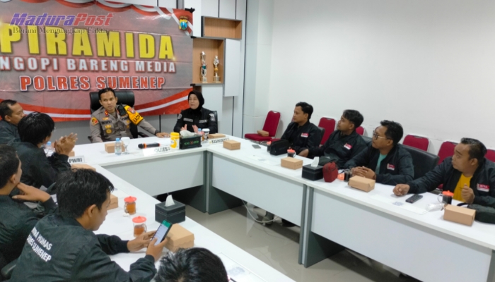 SUMENEP, MaduraPost – Polres Sumenep, Madura, Jawa Timur, melangsungkan kegiatan ‘Piramida Ngopi Bareng Media’ dengan mengundang wartawan yang tergabung di DPC PWRI. Kamis, 21 Desember 2023.