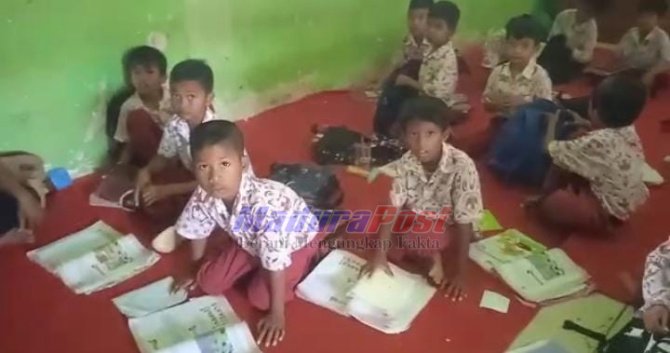 Potret Pendidikan di Sampang, Tidak Punya Ruang Kelas, Siswa Belajar Dilantai Perpustakaan