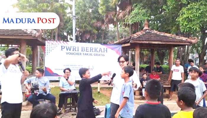 SUMENEP, MaduraPost – Persatuan Wartawan Republik Indonesia (PWRI) Kabupaten Sumenep, Madura, Jawa Timur, menggelar aksi sosial dengan membagikan ratusan voucher takjil gratis kepada masyarakat yang berada di Taman Tajamara.