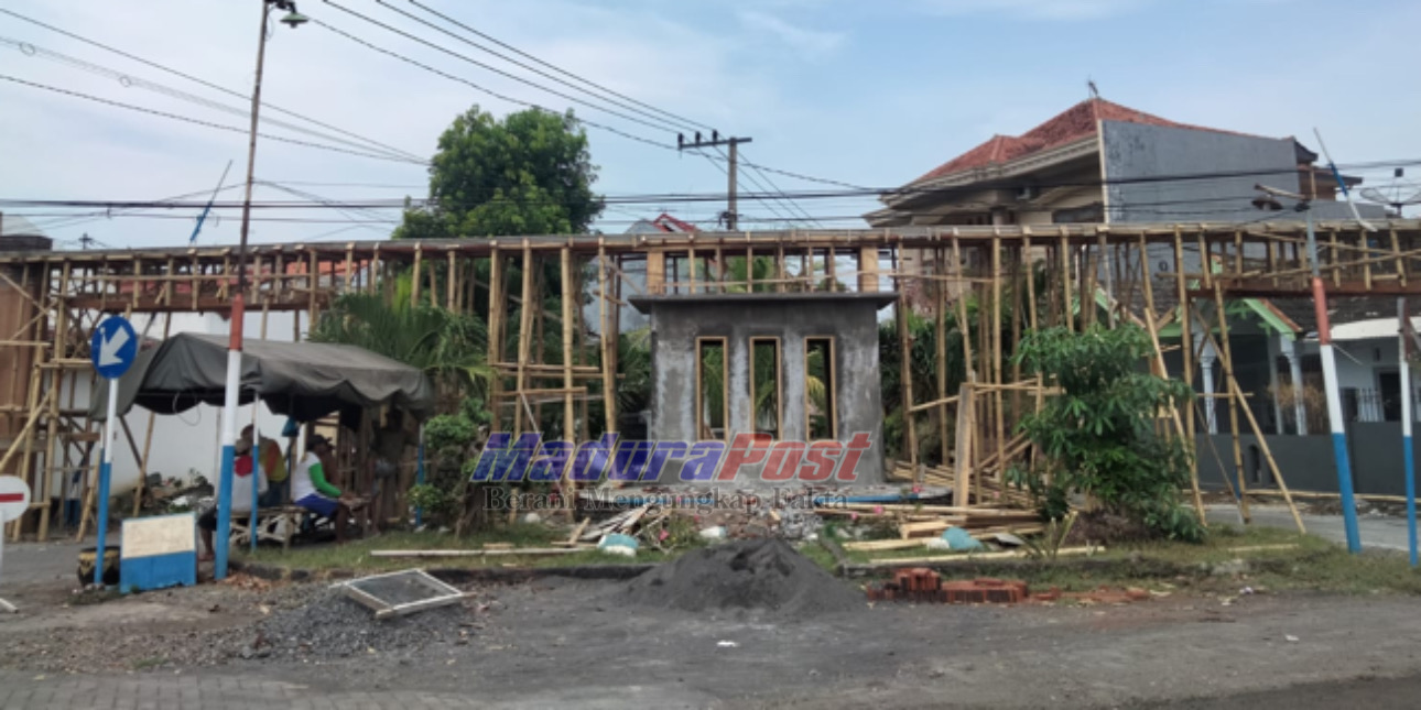 Dari pantauan MaduraPost, pembangunan gapura baru mencapai pengerjaan 50 persen. Nampak terlihat masih dalam proses pengecoran serta tidak ada papan nama proyek yang terpasang dilokasi. Menurut sumber informasi yang diterima, proyek tersebut merupakan dana Bantuan Keuangan (BK) tahun 2023 senilai ratusan juta rupiah.