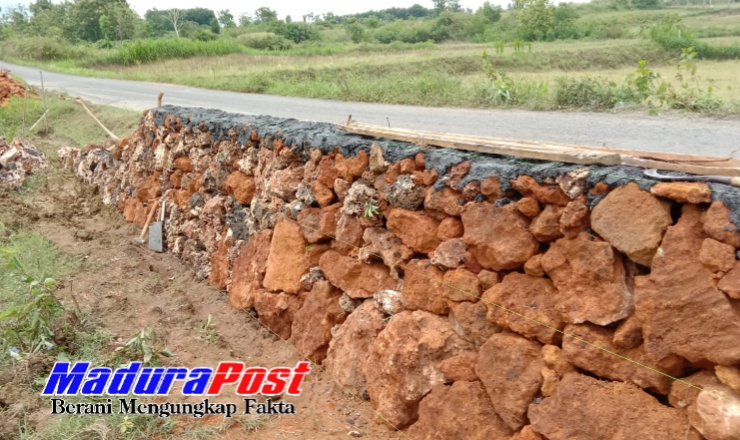 Pantauan MaduraPost di lokasi, pada proyek tampak jelas tataan batu kosong disusun dan langsung ditempeli campuran semen dan pasir. Parahnya tataan batu dan semen hanya menutupi muka bagian atas proyek.