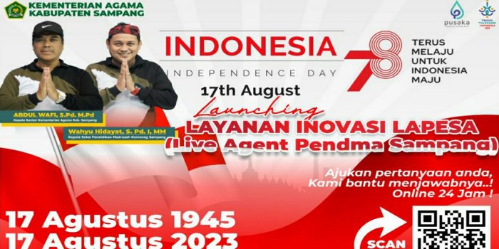 SAMPANG, MaduraPost – Dalam rangka memperingati HUT RI ke-78, Kementerian Agama (Kemenag) Kabupaten Sampang, Madura Jawa Timur, telah mengenalkan layanan inovatif baru yang diberi nama Live Agent Pendma Sampang (LAPESA). Layanan ini bertujuan untuk memberikan jawaban dan solusi terhadap pertanyaan serta permasalahan yang berkaitan dengan RA dan Madrasah secara daring.