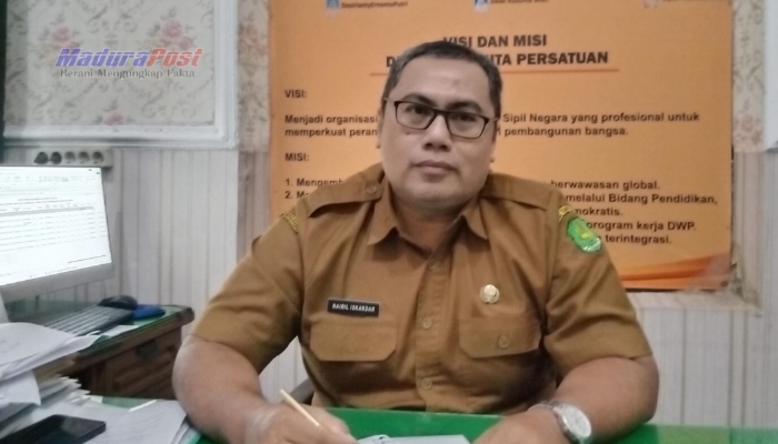 PROFIL. Potret Kepala Bidang Perizinan, Kelembagaan, Pengawasan, dan Pemeriksaan, Diskop UKM dan Perindag Sumenep, Hairil Iskandar, saat berada di ruang kerjanya. (Istimewa for MaduraPost)