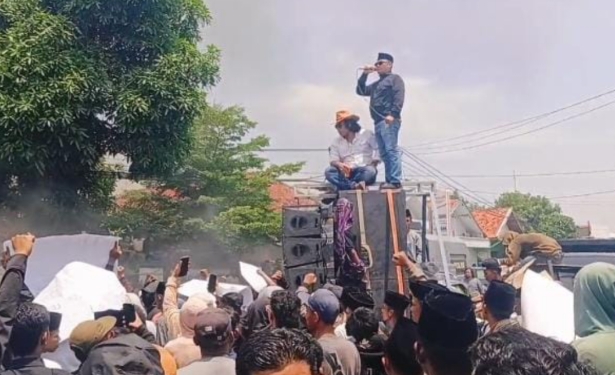 Dalam orasi, pendemo juga menyuarakan kritik melalui lagu “Bayar-Bayar Bupati” yang menggambarkan dugaan jual beli jabatan Pj Kades. Aksi mereka disertai dengan pemblokiran jalan menggunakan barikade dan pembakaran ban bekas di depan kantor kecamatan.